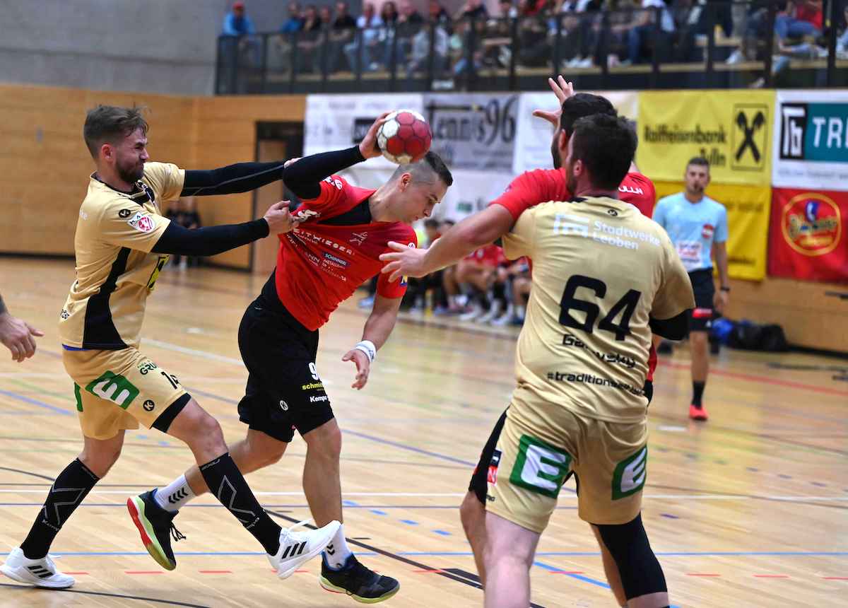 Nachdem Lukas Majbik zum 1:1 ausgeglichen hatte, legten die Gäste aus Leoben einen 4:9-Run hin und gingen 1:5 in Führung. Fehlpässe und Fehlwürfe machten es den Steirern zu einfach. Nach und nach fanden die Tullner ins Spiel und verkürzten auf 6:8. Aber der Anschlusstreffer wollte nicht gelingen und Leoben konnte die Führung wieder auf vier Tore ausbauen. So ging es auch mit 11:15 für die Gäste in die Pause.