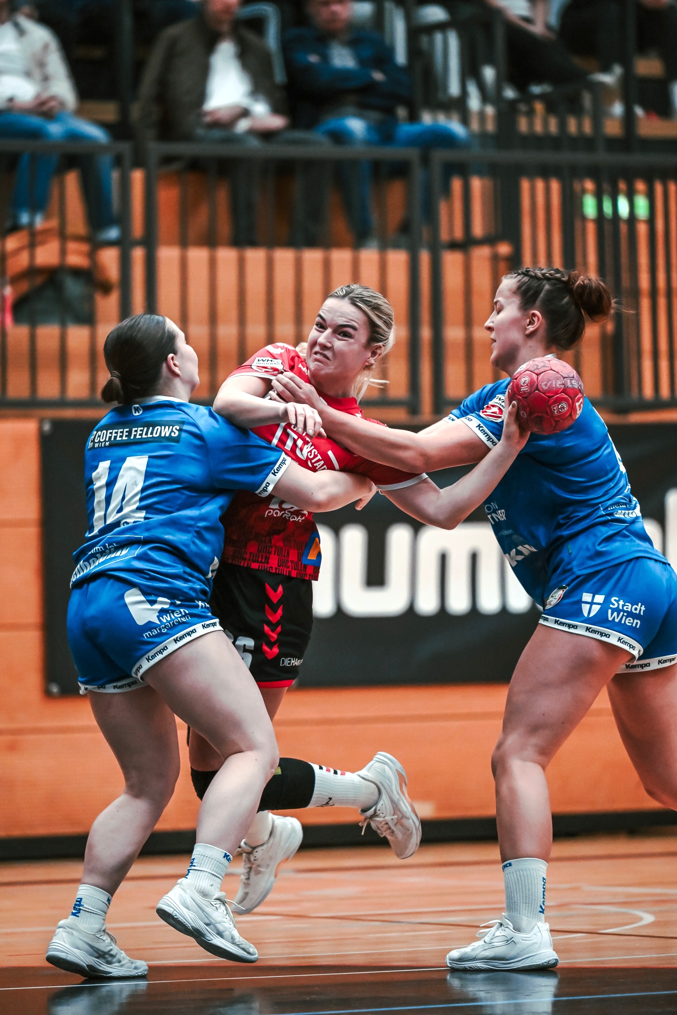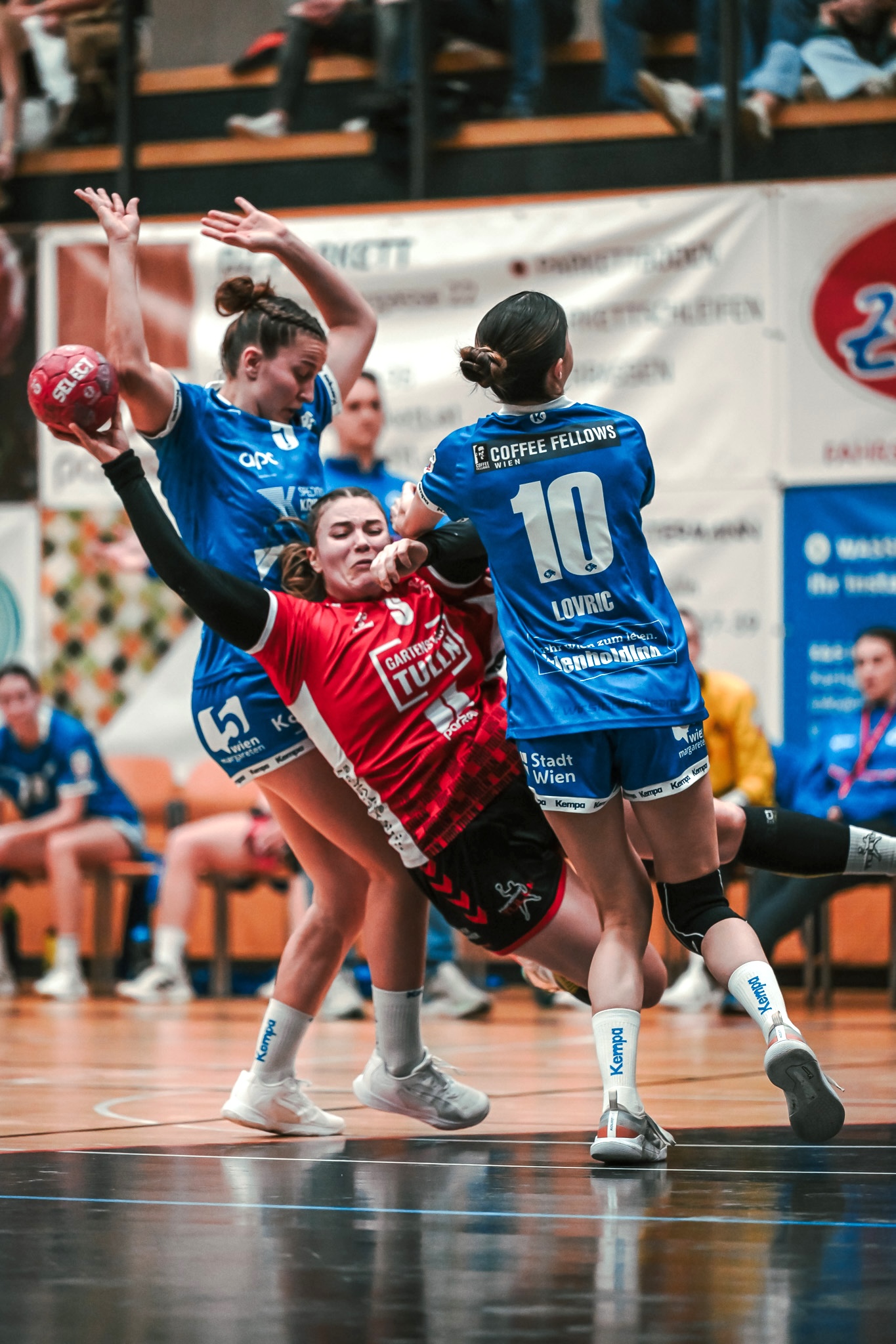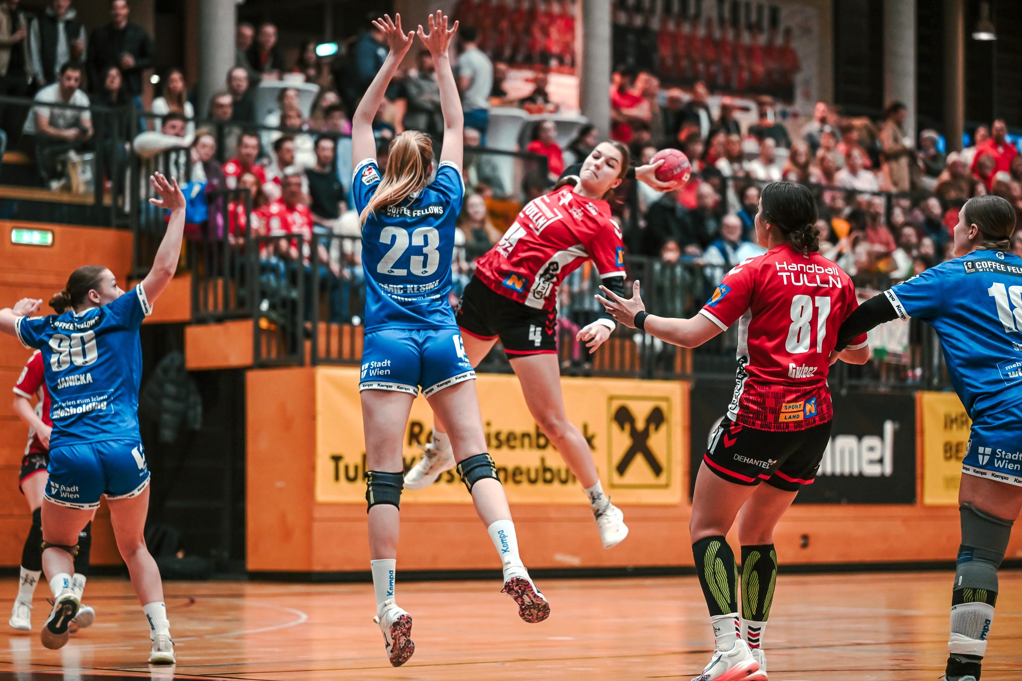 Auch nach dem Seitenwechsel blieb das Spiel lange offen. Mitte der zweiten Hälfte nutzen unsere Mädels eine Überzahlphase gut aus, konnten sich auf 23:18 absetzen und sahen nach 50 Minuten schon wie die Siegerinnen aus. 1:24 Minuten vor Schluss lagen sie immer noch mit 25:22 vorne. Die MGA Fivers setzten alles auf einen Karte und spielten Manndeckung gegen die nach einer Zeitstrafe gegen Hannah Ginsthofer numerisch unterlegenen Tullnerinnen. Vier Mal verloren wir den Ball und die Wienerinnen drehten in der Schlussminute die Partie und sicherten sich den Sieg.