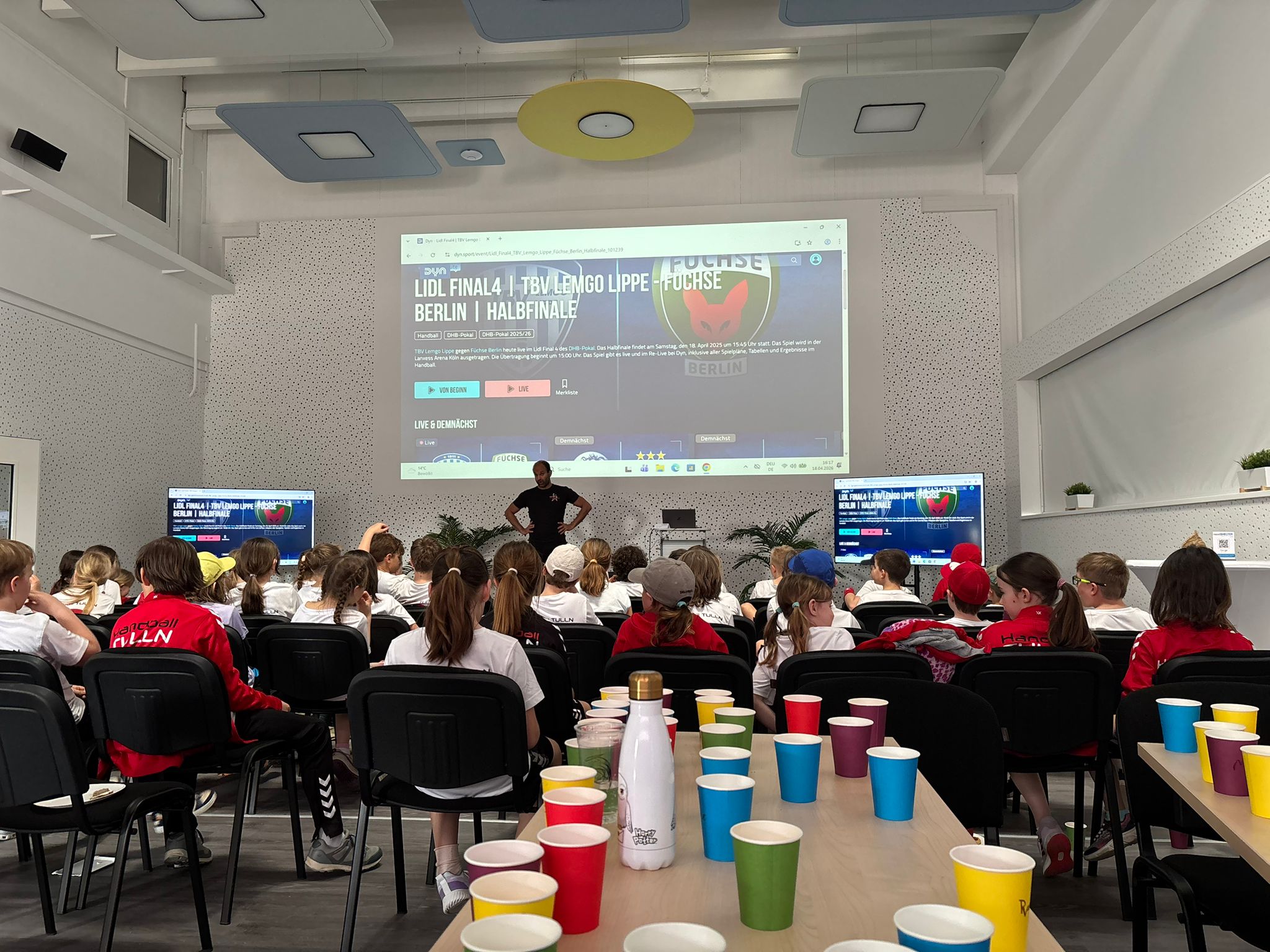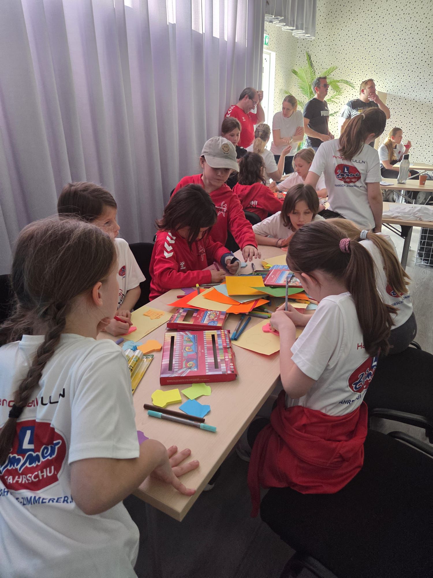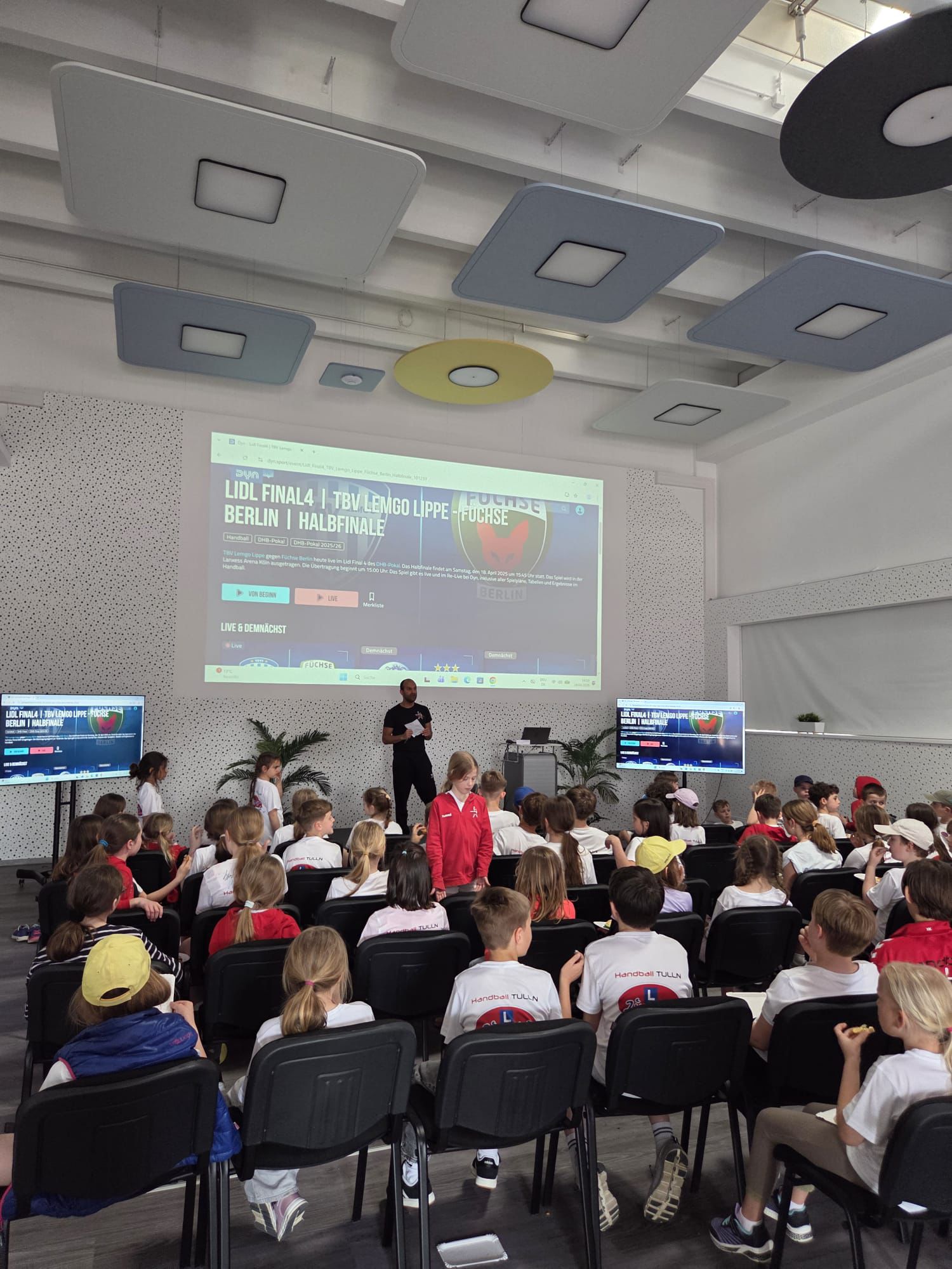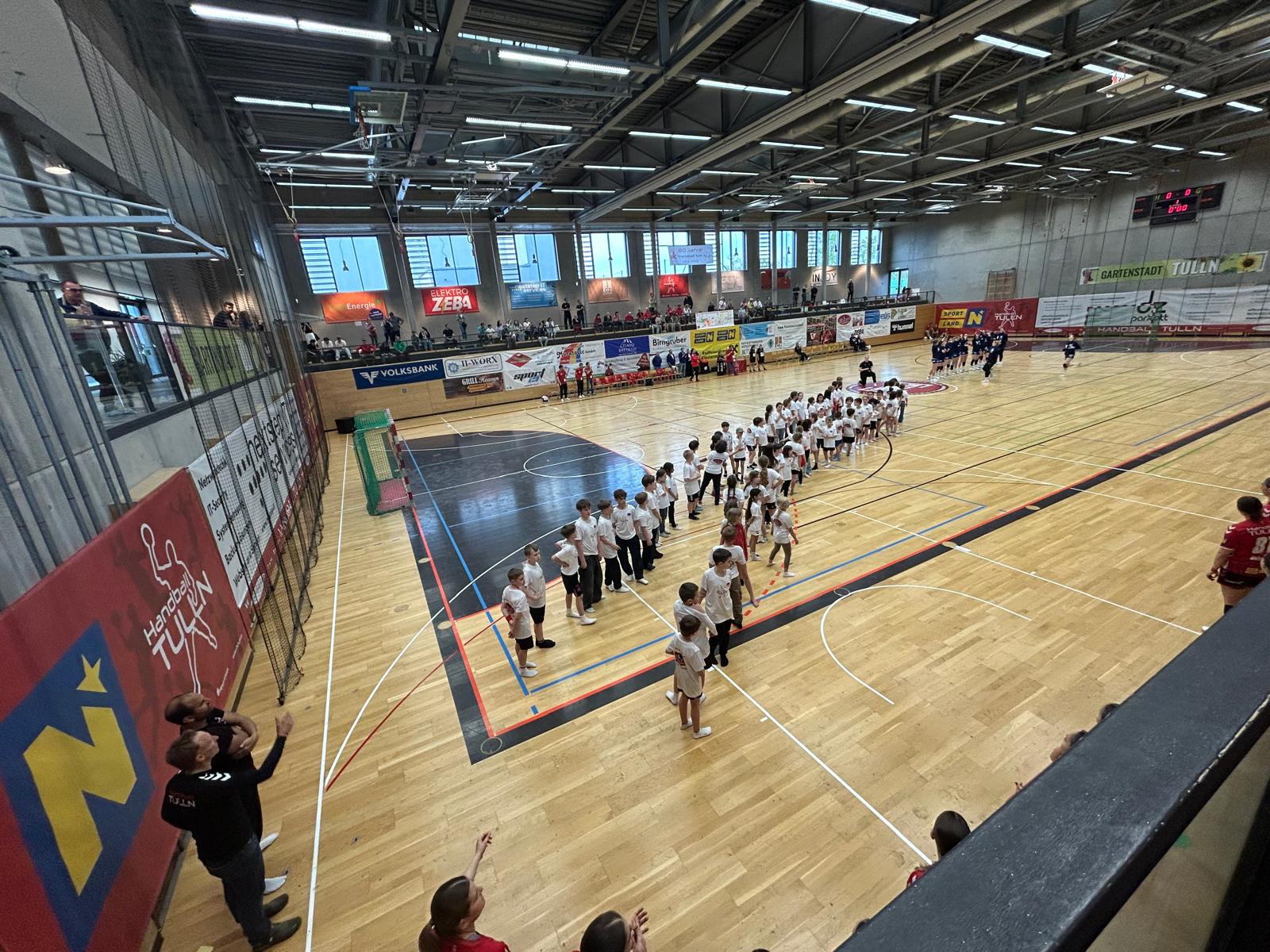 Um 14.00 Uhr begann das Handballfest mit zahlreichen Spiel- und Geschicklichkeit-Stationen im BSZ Turnsaal. Danach ging es mit dem Tulli-Express zu unserem Sponsor Nextstep IT Services, wo das Spiel Füchse Berlin gegen TBV Lemgo Lippe aus dem DHB Cup gezeigt wird. Zu Fuß marschierten unsere Youngsters in die Josef Welser-Sporthalle, wo sie als Korridorkinder und Fans mit den zuvor gestalteten Plakaten unser Damenteam gegen Hypo Niederösterreich anfeuerten.